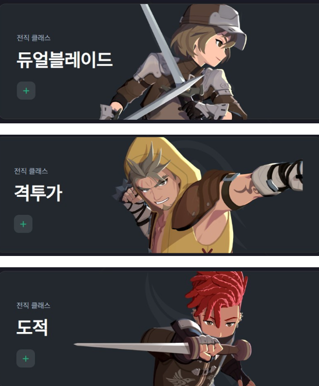 - 격투가: 맨손 전투로 독특한 매력. 초반은 다소 느림.